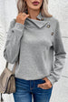 Gray Asymmetric Buttons Detail High Neck Textured Sweatshirt