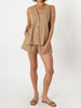 Women 2 Piece Cotton Button Blazer Vest V Neck Sleeveless