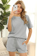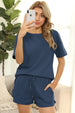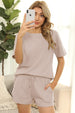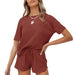 Women Short Sleeve Two Piece Casual Waffle Lounge Set