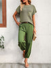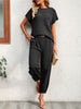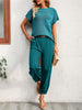 Women Short Sleeve Two Piece Solid Color Casual Waffle Loung