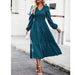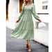 Women's Casual Midi Dress Boho Flutter Long Sleeve Crew Neck Smocked Elastic Waist Tiered A-Line Long Dress