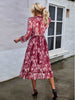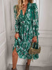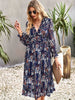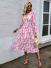 Women's Casual Long Sleeve V Neck Loose Floral Dress Long Dresses Swing Dress for Women