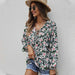Womens Fall Fashion Boho Tops Casual Frill Trim Mock Neck Shirts Puff Long Sleeve Blouse Floral Print Top