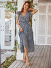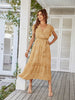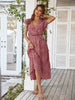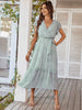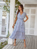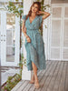 Women's Floral Summer Dress Wrap V Neck Short Sleeve Ruffle Hem A-Line Bohemian Maxi Dresses with Belt